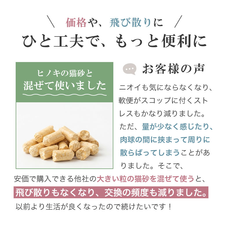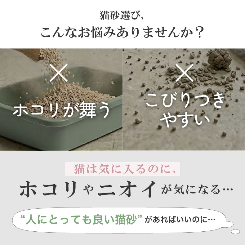 ・猫が好む感触一般的な鉱物系の利点はそのままに、気になる部分だけを抑えた猫が好きなやわらか猫砂です。