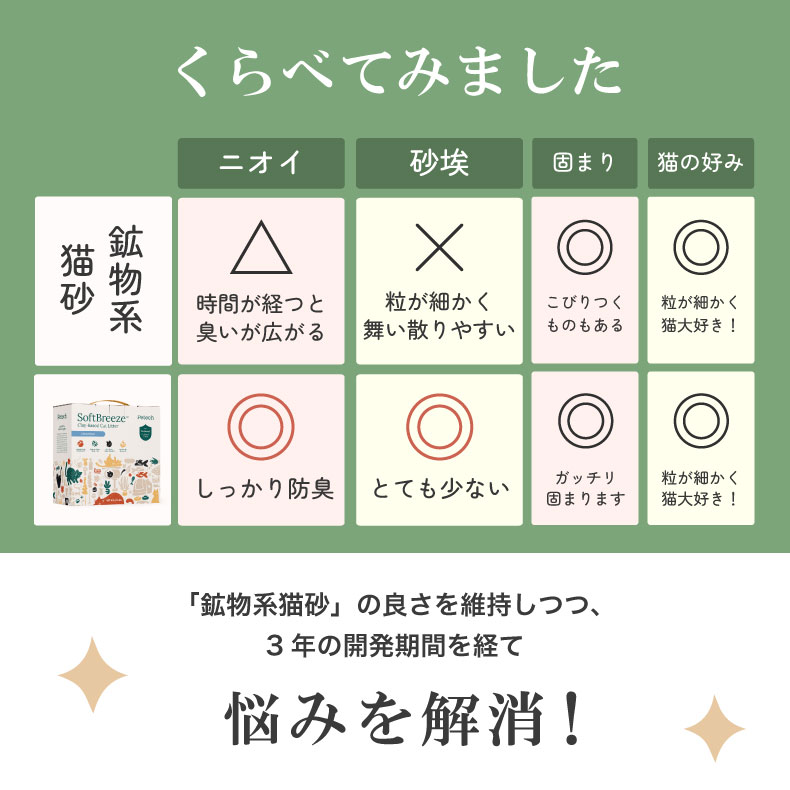 SoftBreeze 猫が好きなやわらか猫砂 ガッチリ固まる 鉱物タイプ 11.34kg×2(約4~6ヶ月分)■特徴■
