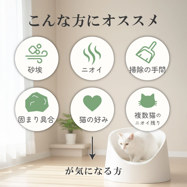 空気を気にせず使えるため、猫にも人にもやさしい使い心地です。
